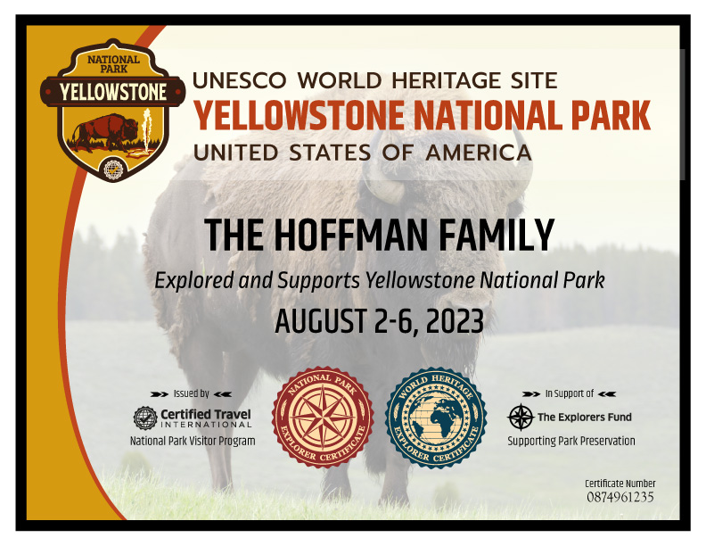Honor your visit to the Park and certify your adventure! Order your personalized National Park Explorer Certificate. Your purchase gives back to the National Park.